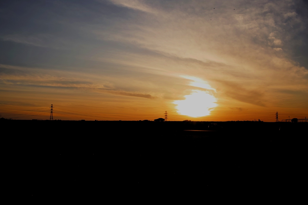 美しい夕陽(朝陽)を見つめている。